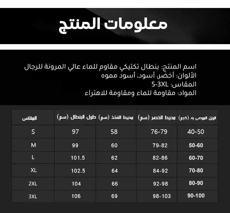 بنطال تكتيكي متين مرن ومقاوم للرياح والماء للرجال