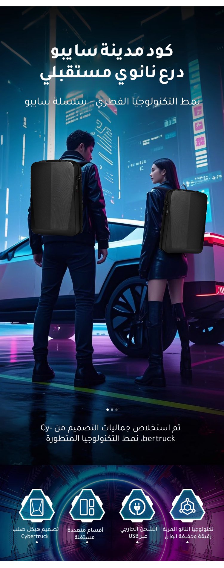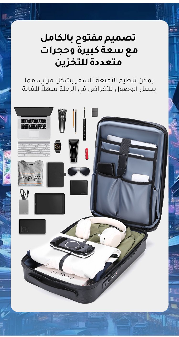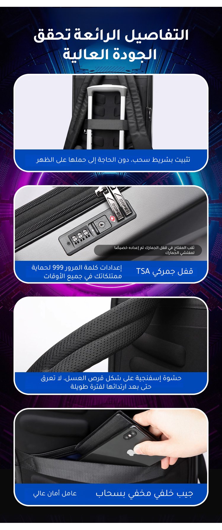 حقيبة ظهر تكنولوجية خفيفة للكمبيوتر المحمول بقفل رقمي (مقاومة للضغط)